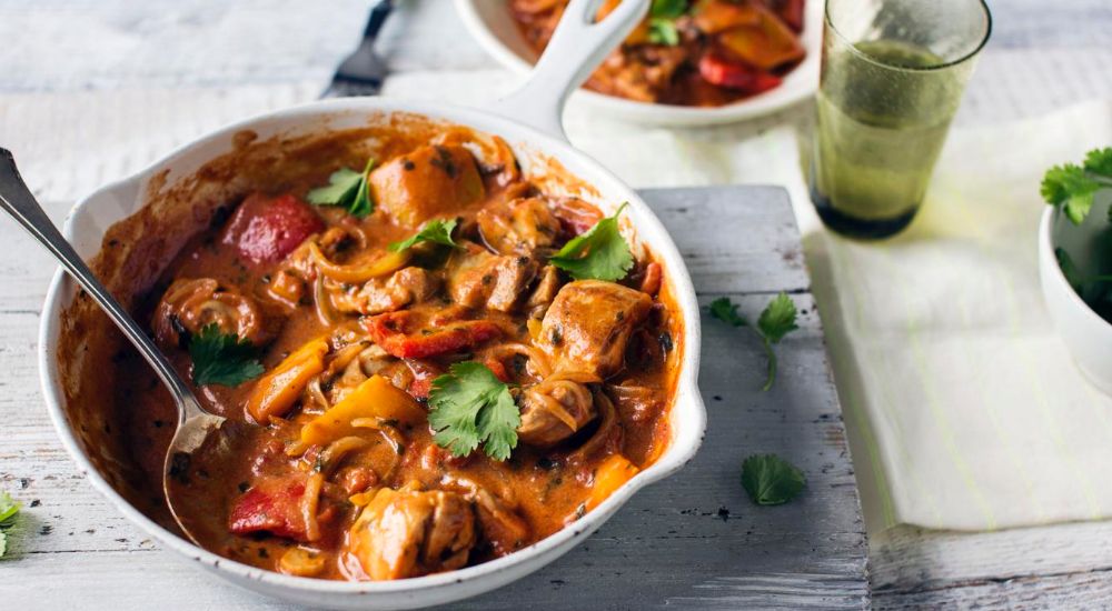 - Bring to a gentle simmer and cook for 20-25 minutes, stirring occasionally until the chicken is tender and the sauce is thick. Season with freshly ground black pepper to taste and garnish with coriander.